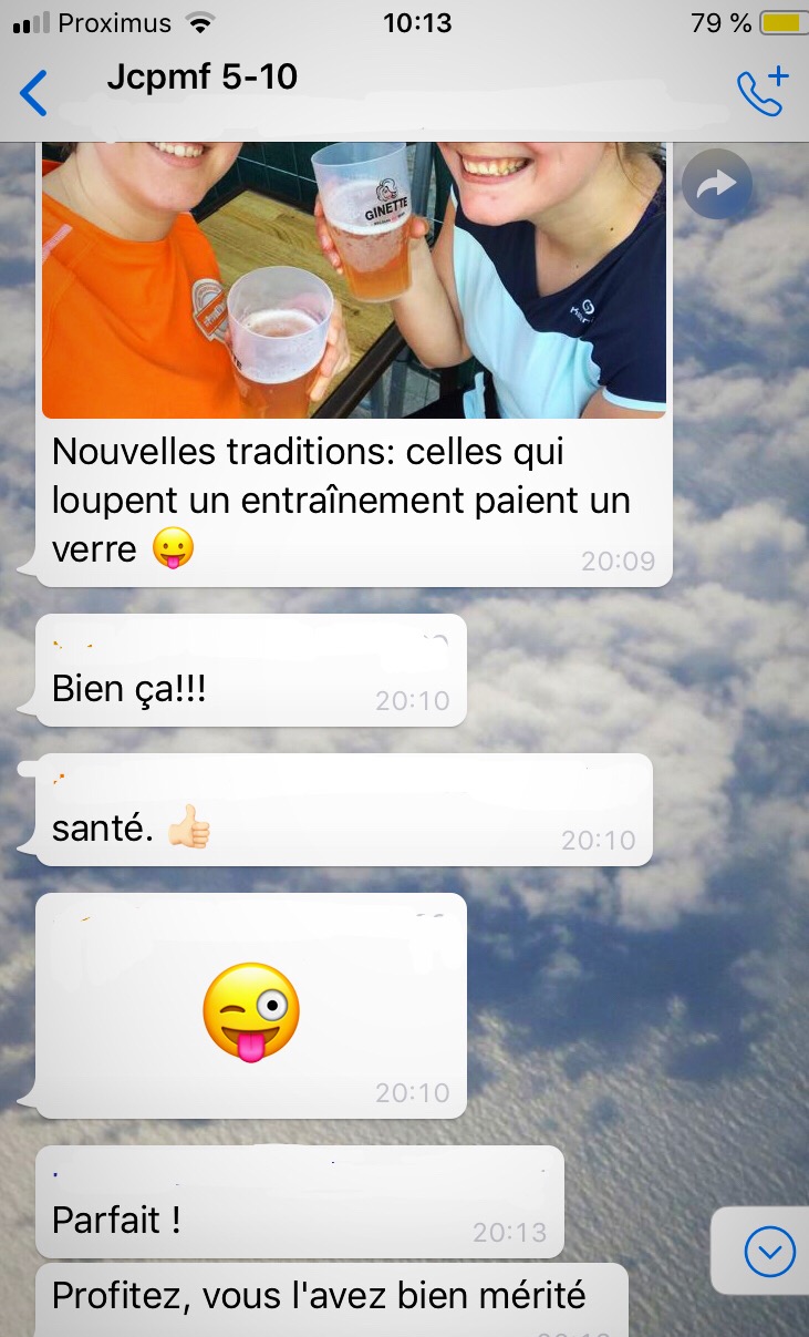 Un groupe WhatsApp, pour se motiver, s’organiser, fixer un entrainement à plusieurs dans la semaine et puis, à force, partager quelques photos de vacances illustrant les raisons de notre absence à l’entrainement, partager les photos de la bonne bière d’après l’effort, ou du lever de soleil dont on a profité en allant courir ce matin. Voilà les ingrédients qui m’ont permis de reprendre le jogging, mais surtout, de continuer !